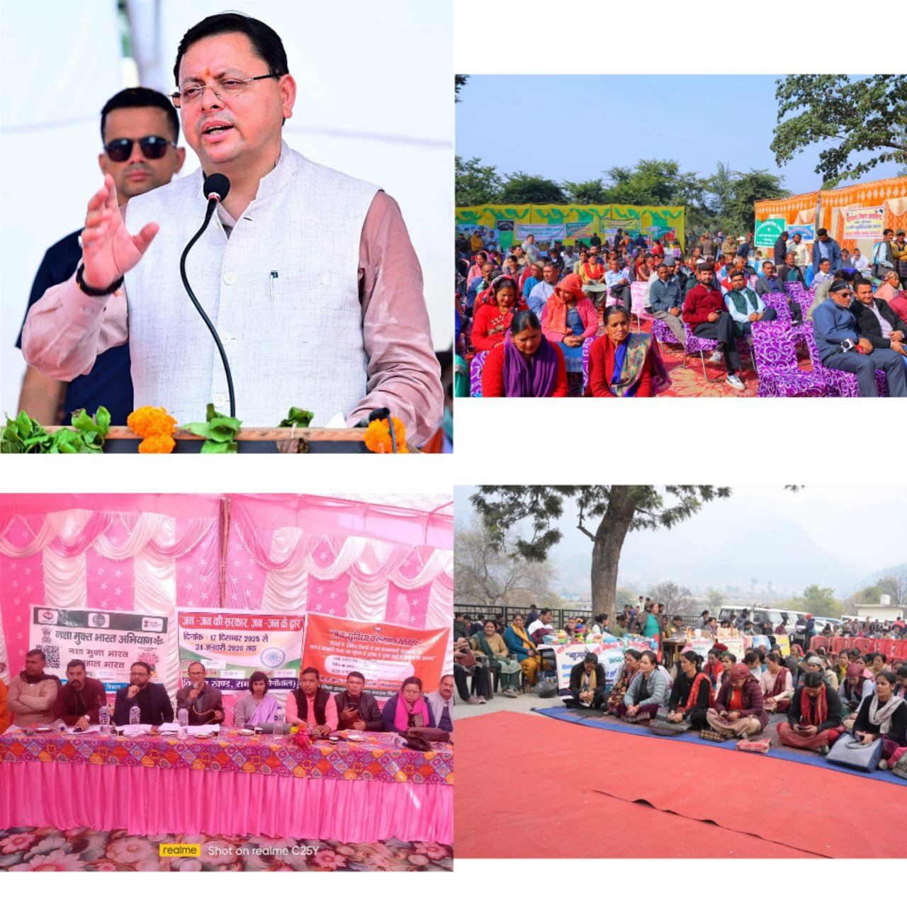 मुख्यमंत्री श्री पुष्कर सिंह धामी जी के नेतृत्व में प्रदेश सरकार द्वारा संचालित ‘जन-जन की सरकार, जन-जन के द्वार’ कार्यक्रम राज्य में सुशासन, संवेदनशील प्रशासन और जनसेवा की सशक्त मिसाल बनकर उभरा है। 23 दिन पूर्व 17 दिसंबर से शुरू हुए इस कार्यक्रम के तहत अब तक उत्तराखंड के सभी 13 जनपदों में कुल 300 से अधिक शिविर आयोजित किए जा चुके हैं, जिनका उद्देश्य शासन को सीधे जनता के द्वार तक पहुँचाकर आमजन की समस्याओं का त्वरित, पारदर्शी और प्रभावी समाधान सुनिश्चित करना है।