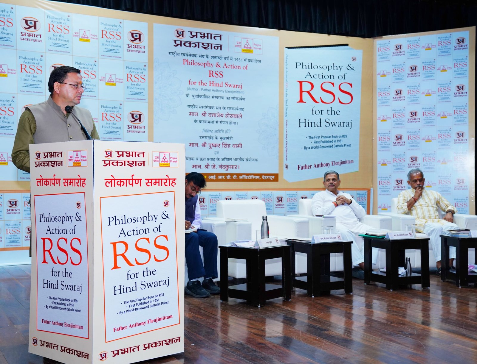 मुख्यमंत्री श्री पुष्कर सिंह धामी ने आई आर डी टी सभागार देहरादून में आयोजित कार्यक्रम में राष्ट्रीय स्वयंसेवक संघ पर पुर्नप्रकाशित पुस्तक के संस्करण “फिलॉसोफी एंड एक्शन ऑफ़ आरएसएस फॉर हिन्द स्वराज” का लोकार्पण किया | इस अवसर पर राष्ट्रीय स्वयंसेवक संघ के सरकार्यवाह,श्री दत्तात्रेय होसबोले , राष्ट्रवादी चिंतक एवं ‘प्रज्ञा प्रवाह’ विशिष्ट वैचारिक मंच के संयोजक, श्री जे. नंदकुमार भी उपस्थित थे |