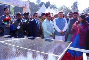 मुख्यमंत्री श्री पुष्कर सिंह धामी ने सोमवार को रेंजर्स ग्राउण्ड देहरादून में ‘ उत्तराखण्ड के प्रथम सोलर मेले दो दिवसीय ‘सौर कौथिग’ का शुभारंभ किया। इस अवसर पर उन्होंने पीएम सूर्यघर योजना, मुख्यमंत्री सौर स्वरोजगार योजना और सोलर वाटर हीटर योजना के लाभार्थियों को अनुदान राशि के चेक प्रदान करने के साथ ही यूपीसीएल मुख्यालय में बनाई गई सौर ऊर्जा आधारित म्यूरल आर्ट का लोकार्पण भी मुख्यमंत्री ने किया। मुख्यमंत्री ने सौर ऊर्जा जन जागरूकता के लिए चलाई जा रही सोलर वैन को भी हरी झण्डी दिखाकर रवाना किया। इसके माध्यम में आगामी सौ दिनों तक सोलर ऊर्जा से संबंधित विभिन्न जानकारी लोगों को दी जायेगी। साथ ही विभिन्न स्टॉल पर जाकर सौर ऊर्जा के क्षेत्र में किए जा रहे नवोन्मेषी प्रयोगों की जानकारी ली।