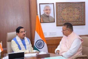नई दिल्ली में केंद्रीय मंत्री प्रह्लाद जोशी से भेंट करते कृषि मंत्री गणेश जोशी
